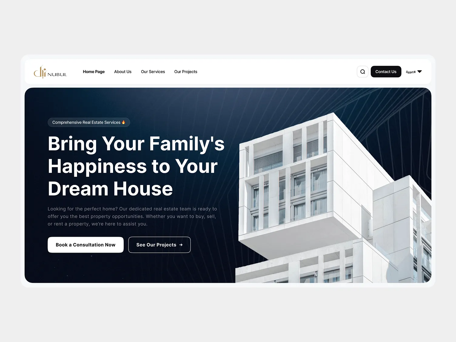 Nubul منصّة عقارية حديثة تساعد المستخدمين في شراء، بيع، أو تأجير العقارات بسهولة، مع خدمات استشارية متخصصة وتجربة استخدام عصرية وموثوقة.
